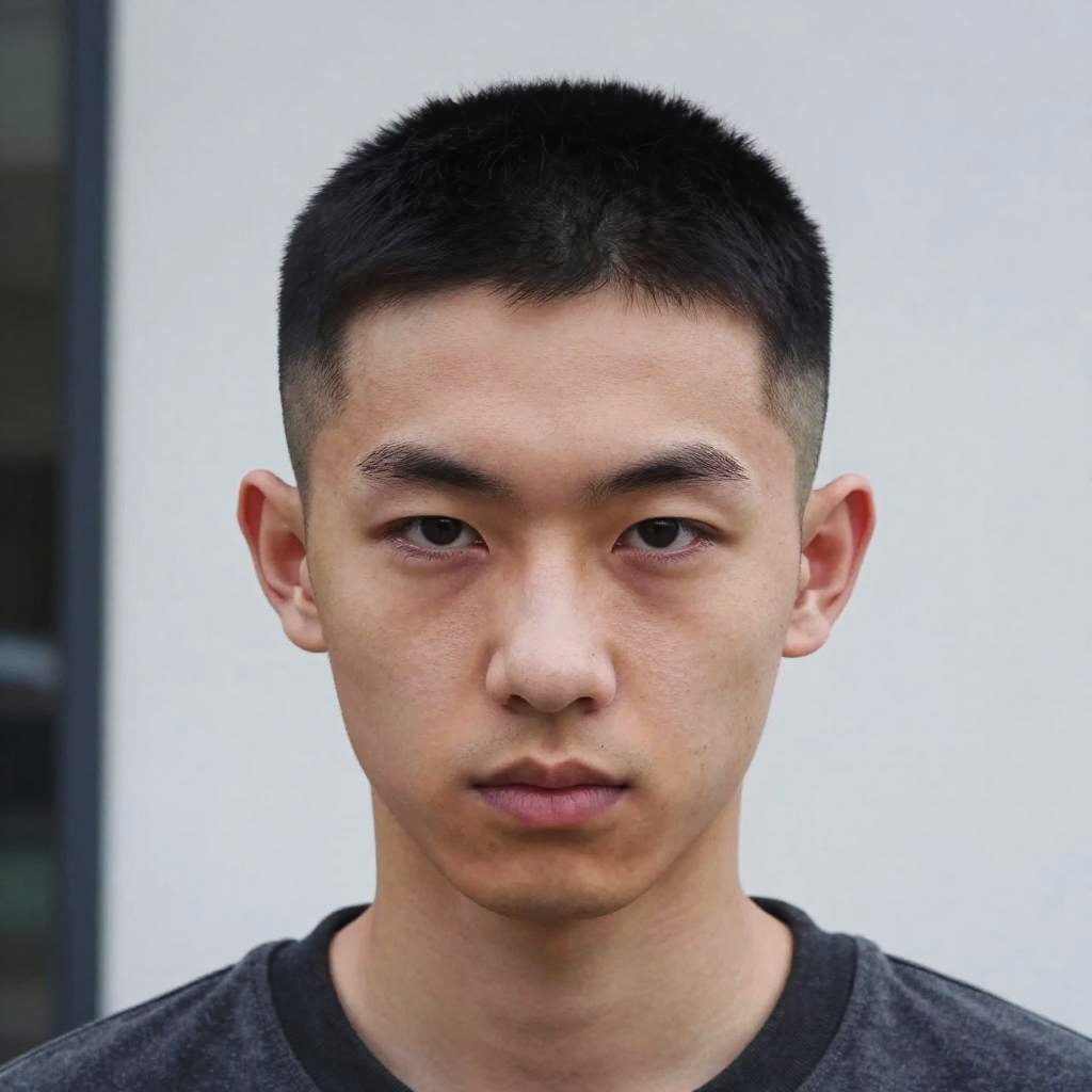 Hyper-Realistic Asian Buzz Cut Portrait