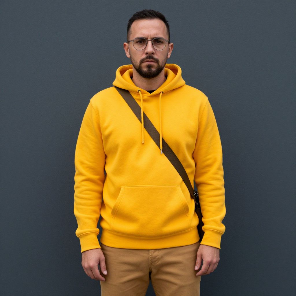 Serious Man in Yellow Hoodie