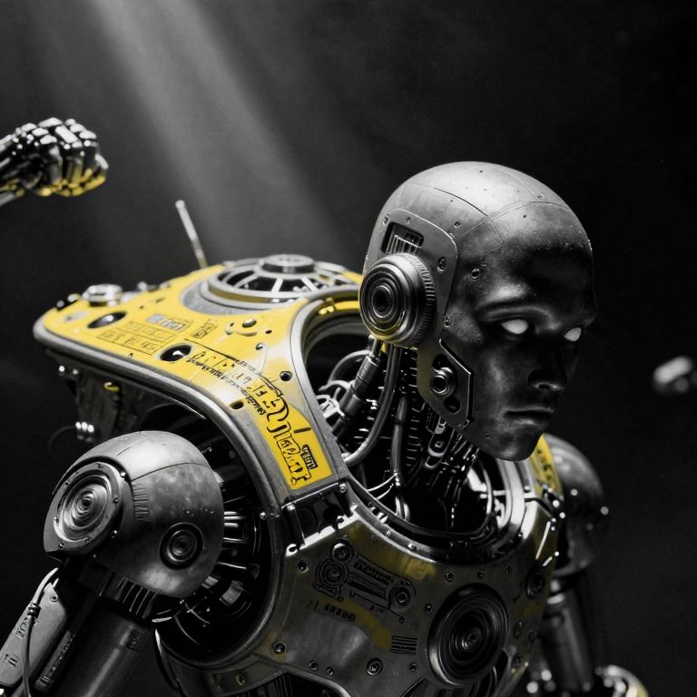 Film noir style, full body cyberpunk cyborg, metal mechanism, biomechanical futuristic body, highly detailed symmetrical face, creative masterpiece, Realism, Vivid Colors, UHD Artwork, James Jean, Patrick Woodroffe, carved ivory and rusty heraldic metal armor, grimdark, dark reflections, leather, gears, beautiful gradient, depth of field, neoprene, Behance winner, unsplash portrait, stylized digital art, smoothness, ultra high resolution, Unreal Engine 5, super sharp focus, difficult complexity, Surrealism, hyperrealism intricate artistic masterpiece, sinister, epic, epic cinematic brilliant stunning complex meticulously detailed dramatic atmospheric maximalism digital matte painting, broken glass effect, no background, breathtaking beauty, pure perfection