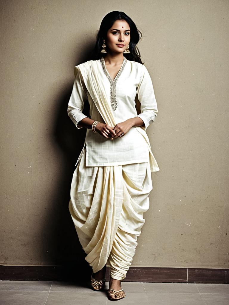 Woman in Dhoti Suit Salwar, full-body photo with elegant attire