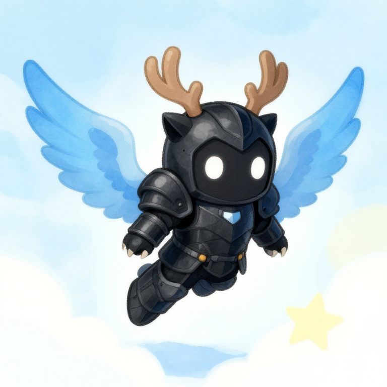 Kawaii Emojis Angel in black armor, blue wings , antler, claw, full body, fliyng in the sky watercolor,