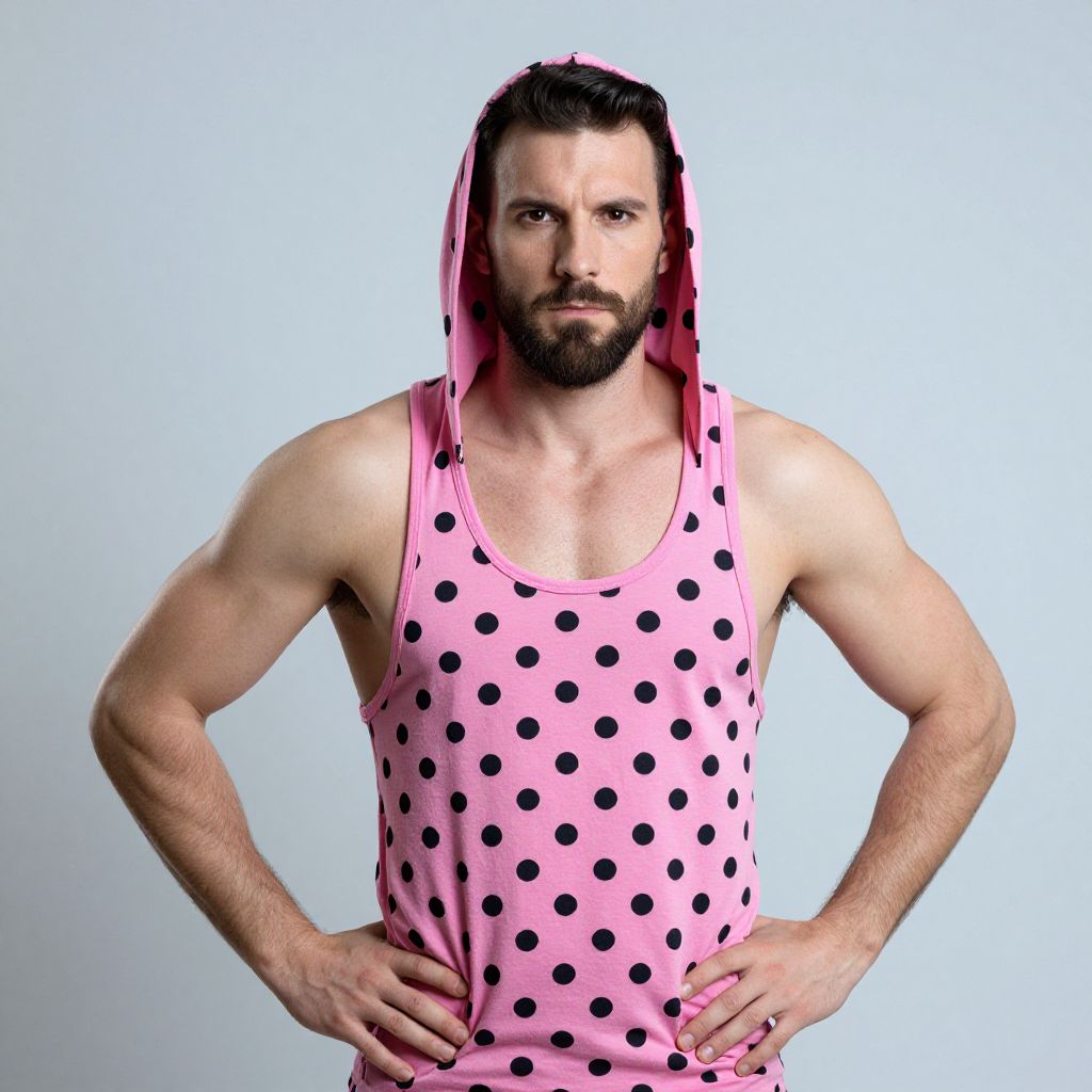 Muscular Man in Pink Polka Dot Tank