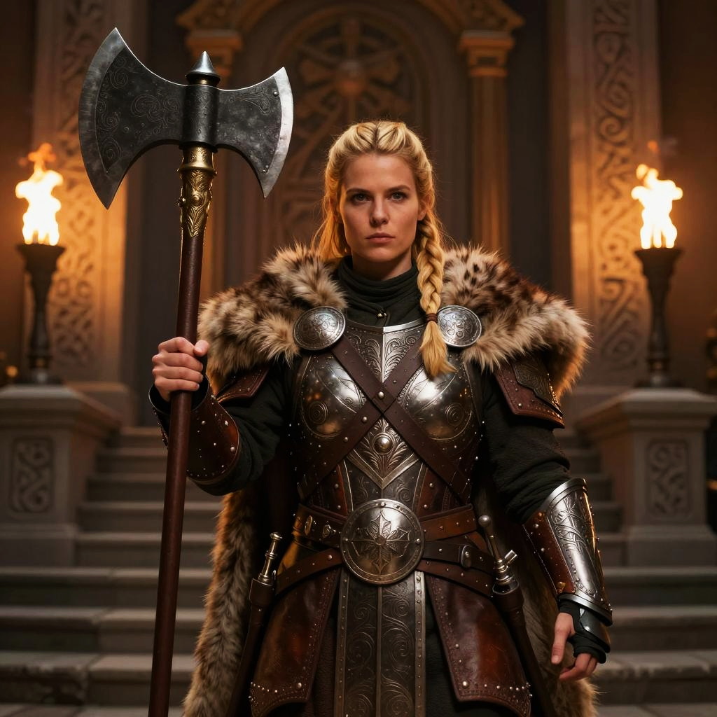 Brave Dwarf Shieldmaiden in a Fortress