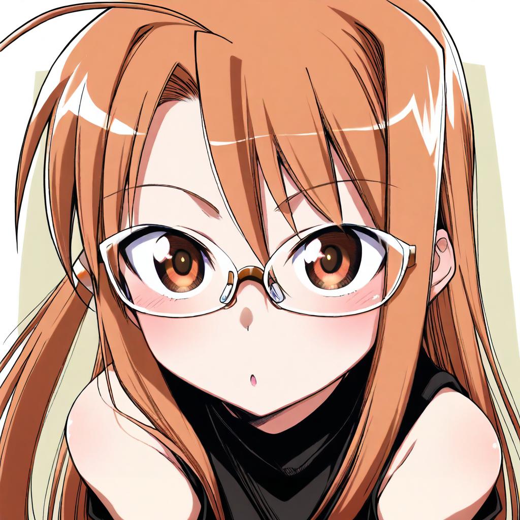 Hasegawa chisame, mahou sensei negima!, 1girl, brown eyes, glasses, long hair, brown hair, ahoge, by artist hanya (hanya yashiki), animagine