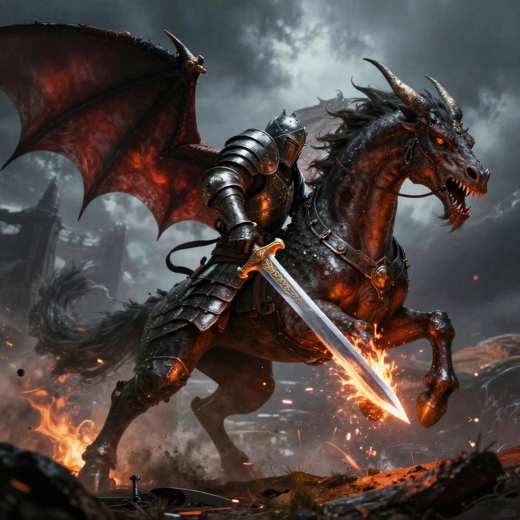 Armored Knight on Fiery Dragon Mount