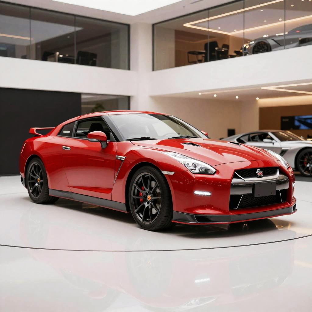 Red Nissan GTR R35 in Modern Showroom