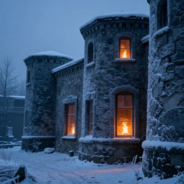 In a world where architecture whispers secrets, the frost-kissed walls stand as silent sentinels, their luminescent eyes glowing with the warmth of hidden fires, inviting contemplation amidst the cold embrace of solitude.