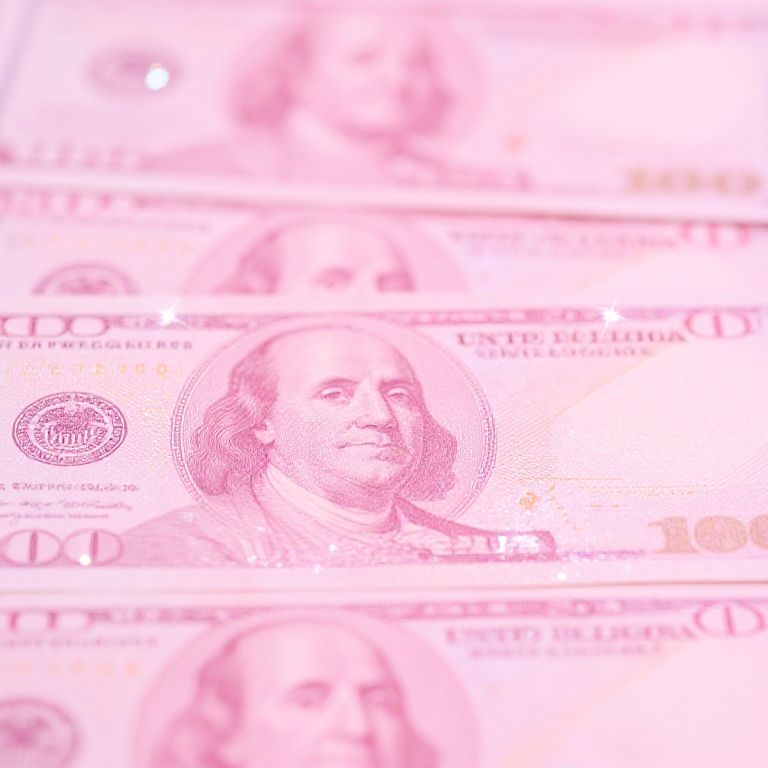 Sparkly pink money background composed of shimmering pink cash bills layered over a glittery texture, accented with sparkling light reflections and subtle bokeh effects, creating an eye-catching and opulent atmosphere suitable for finance or fashion designs.