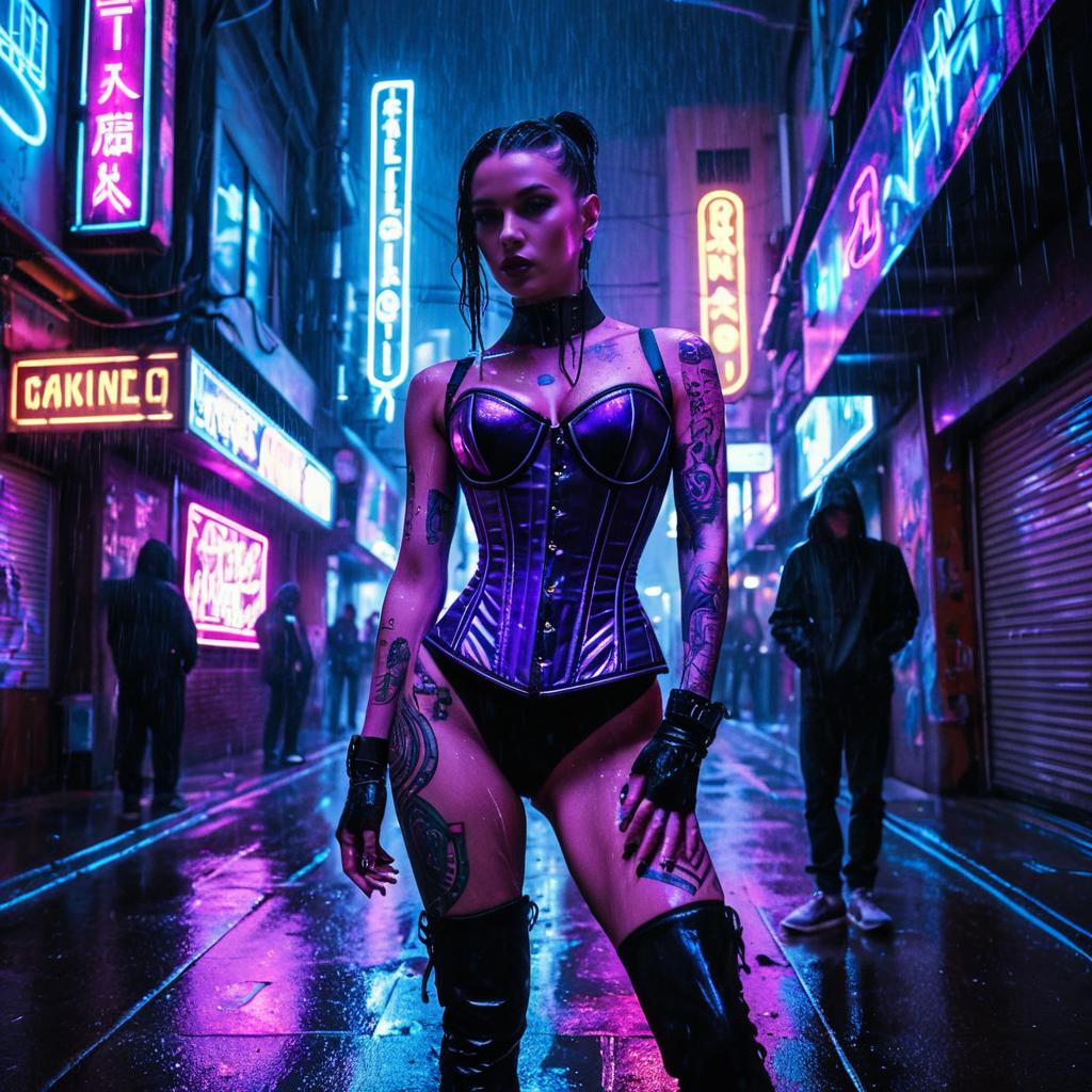 Female Cyborg in Neon-Lit Control Room