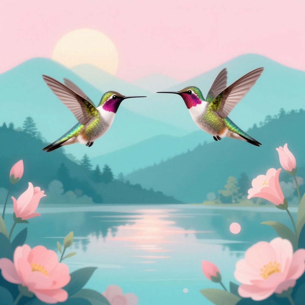 Hummingbird Over Misty Rainforest Canopy