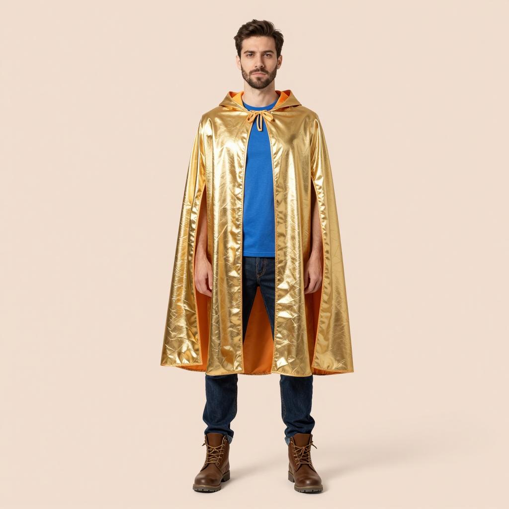 Orange traffic cone costume, photorealistic, young man, standing, full body, wearing orange traffic cone hat, orange safety vest, black hoodie, blue jeans, brown sneakers, hands in vest pockets, plain beige background, soft lighting, minimalist, casual style, slight smile, straight posture, concrete floor, no visible ures on background, natural light from side, modern, relaxed atmosphere