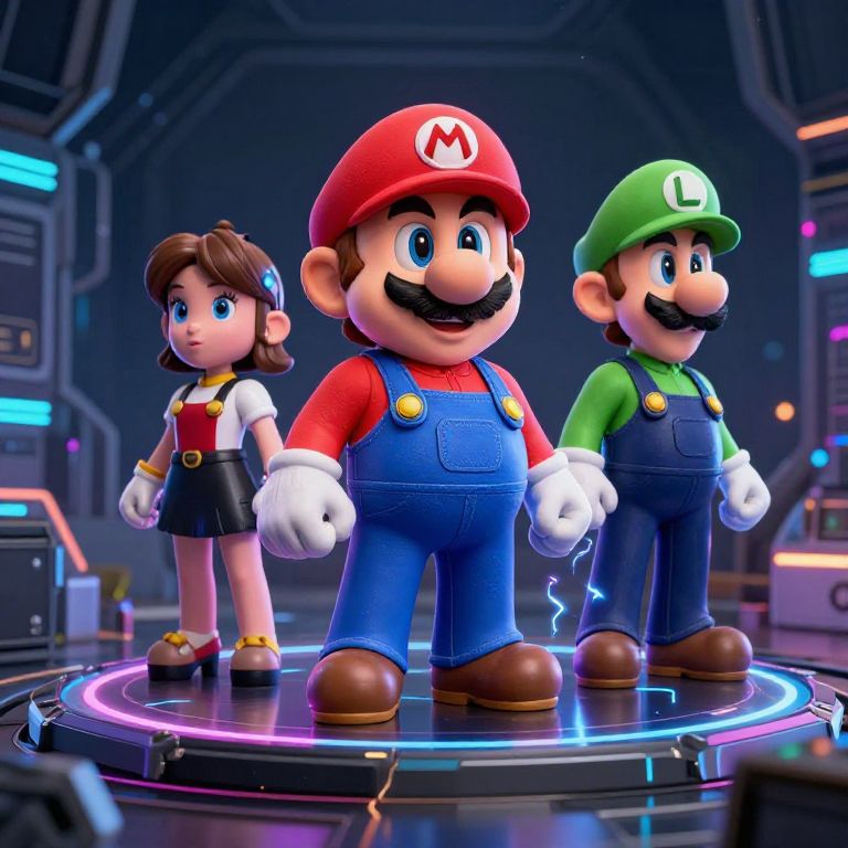 "Ink Dilution staging in an octagon, Mario against Luigi, with electric effects, ambient light, futurist, cybernetic, ultra realistic and cinematic, 8k,"