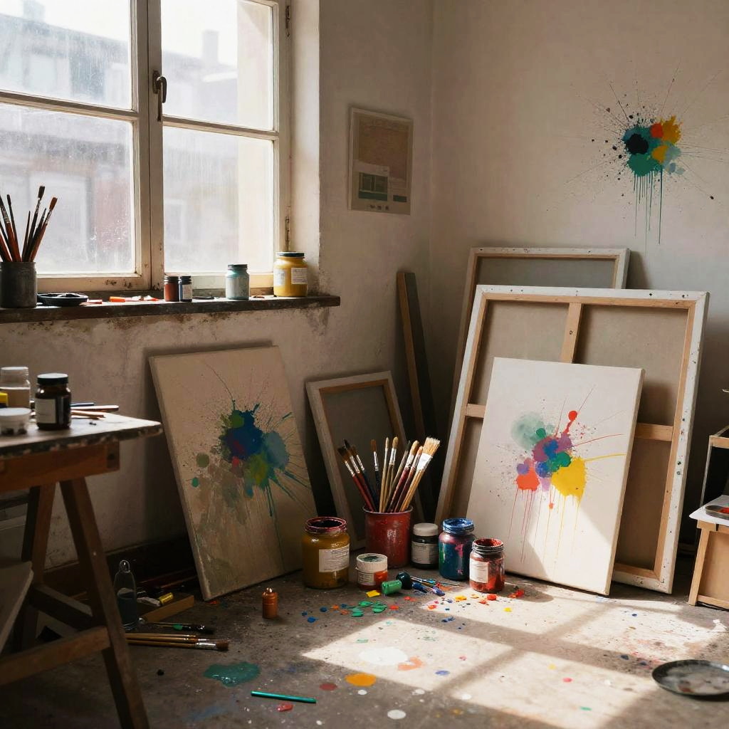 Bricolage concept art showing a creative workspace filled with eclectic handmade tools, scattered crafts materials, assembled mechanical parts, vibrant mixed media art pieces, warm natural lighting, rustic wooden textures and a cozy inventive atmosphere.