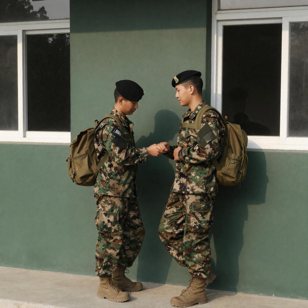 Confident Soldiers in Urban Street Scene