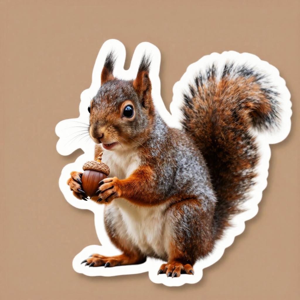 Cut sticker depicting the squirrel holding the acorn, a solid background