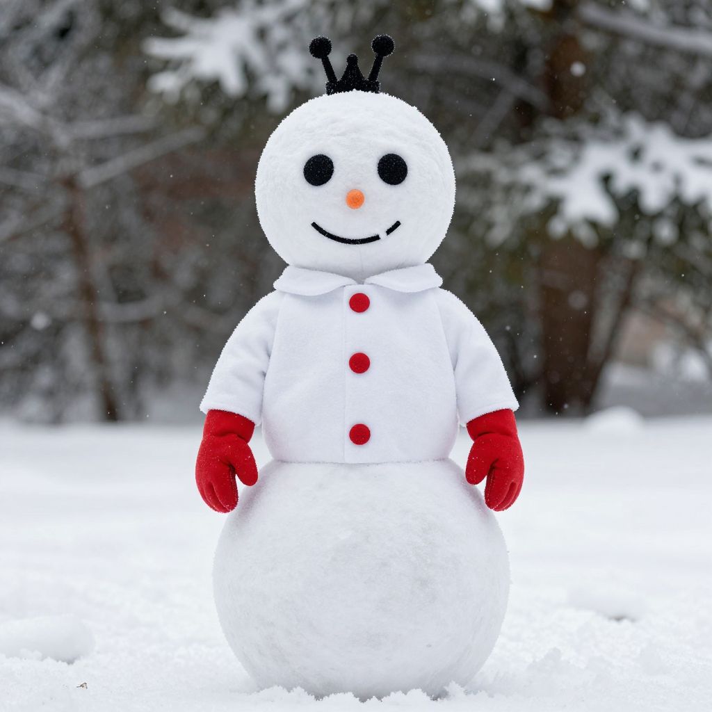 Snowball Superhero Costume, dressed in a white coat and red gloves in the snow