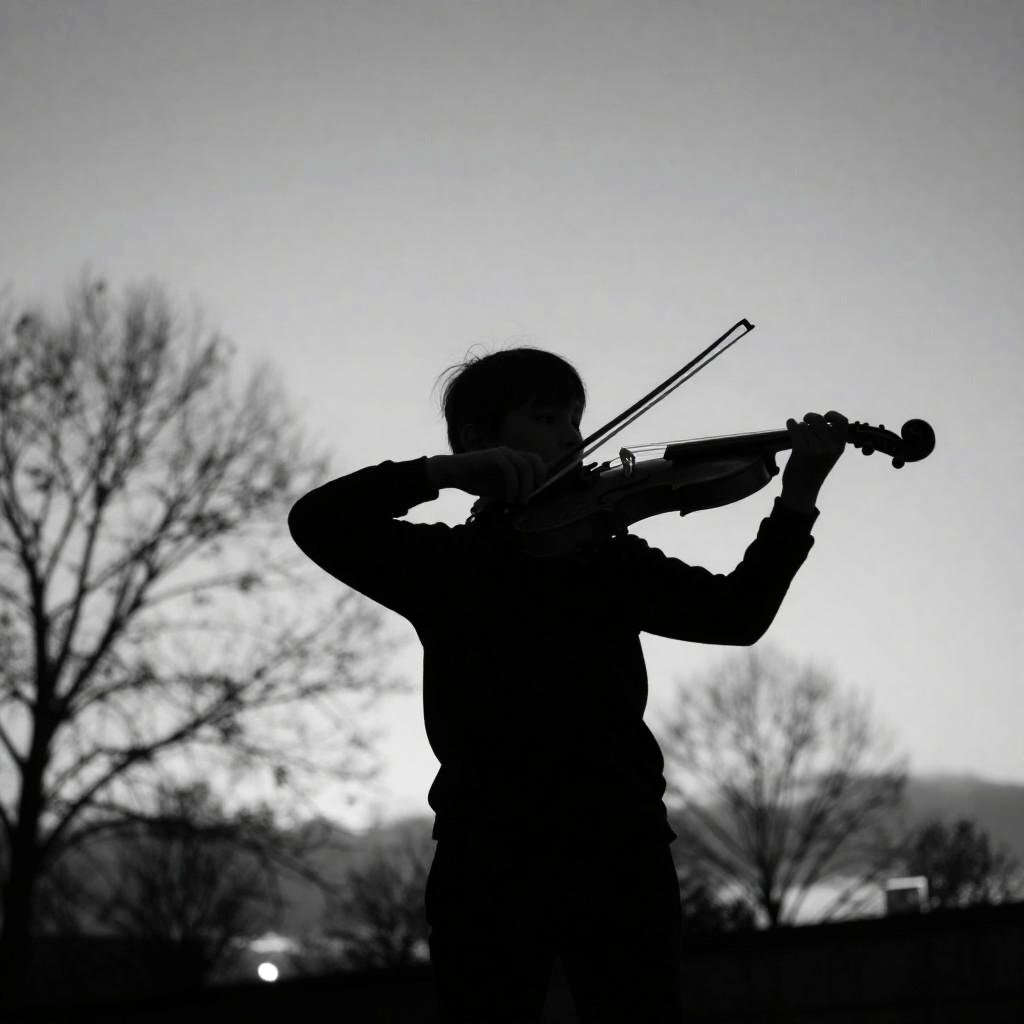 Silhouette of Child Playing Violin