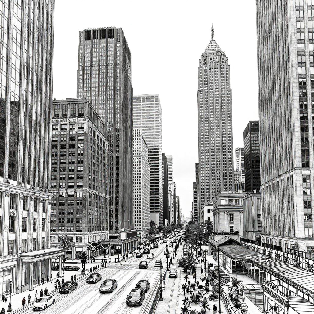 Dynamic Urban Cityscape Lineart