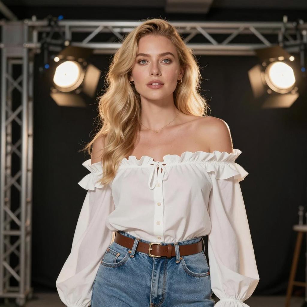 Portrait of Blonde Woman in Stylish Outfit