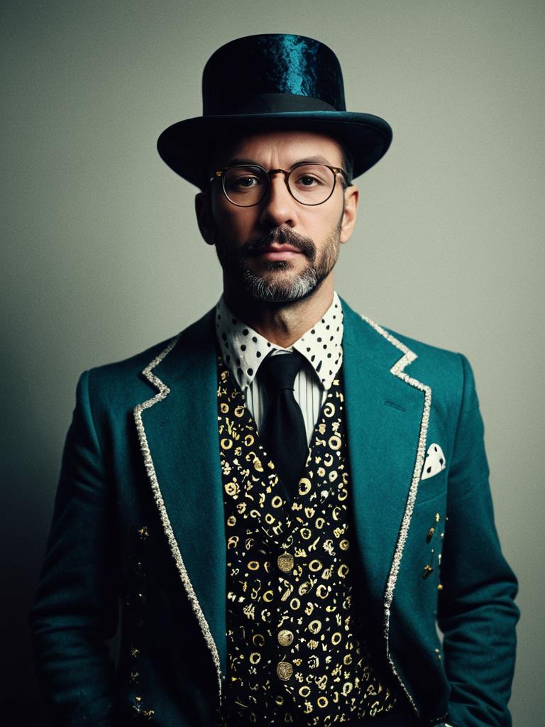 Man in Themed Outfit, photorealistic detailed studio portrait