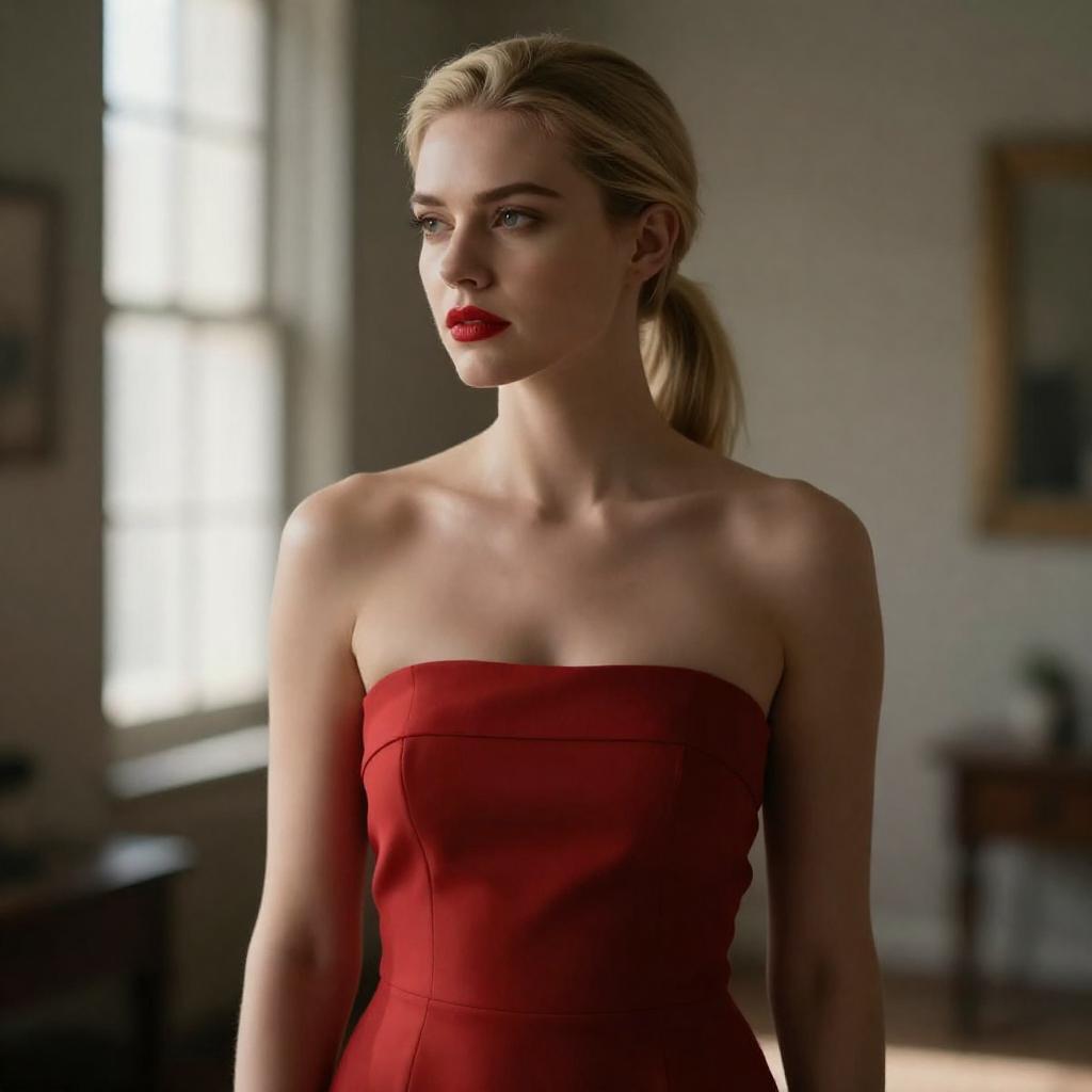 Blonde Woman in Room with Flames