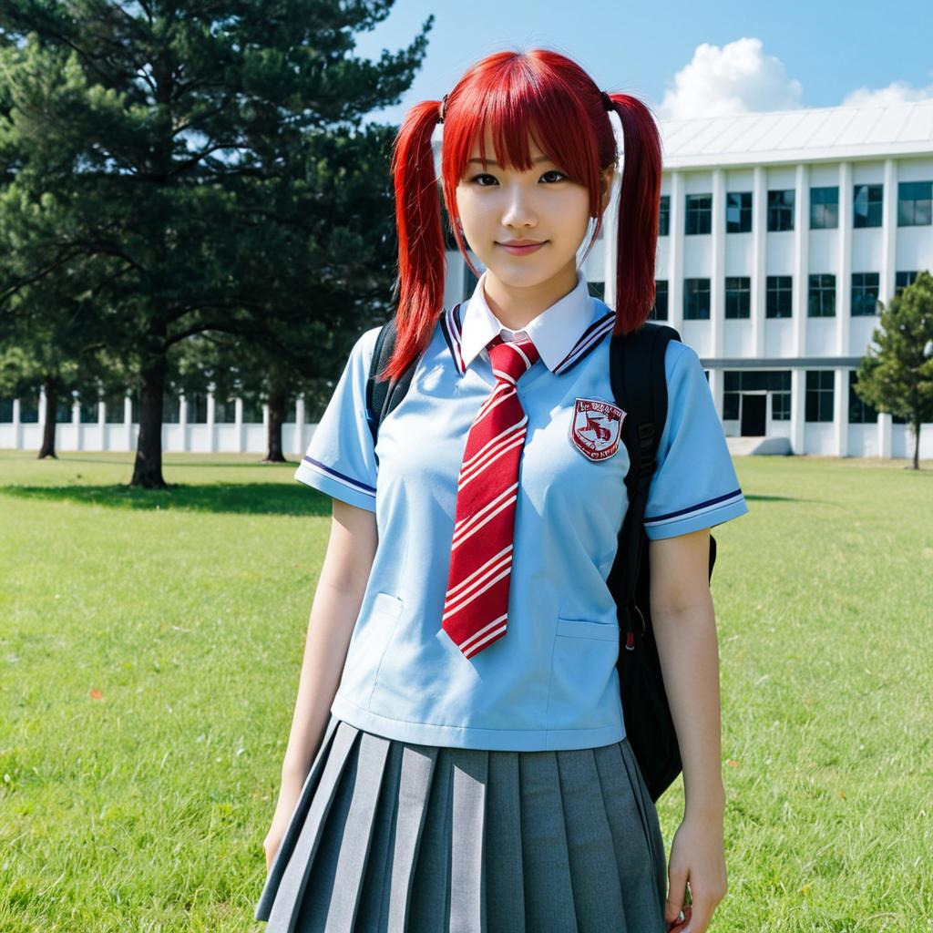Young Woman in School Uniform with Red Pigtails