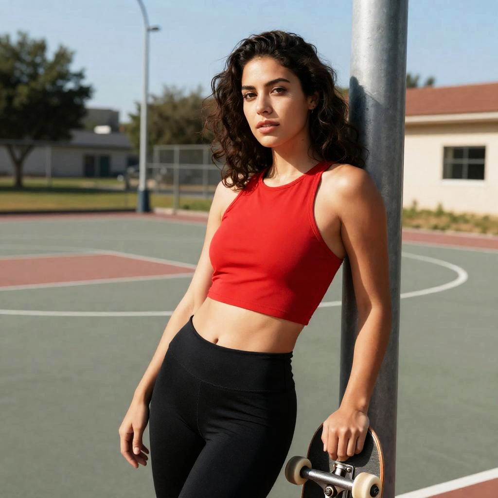 Teenager in Orange Tank Top at Skate Park