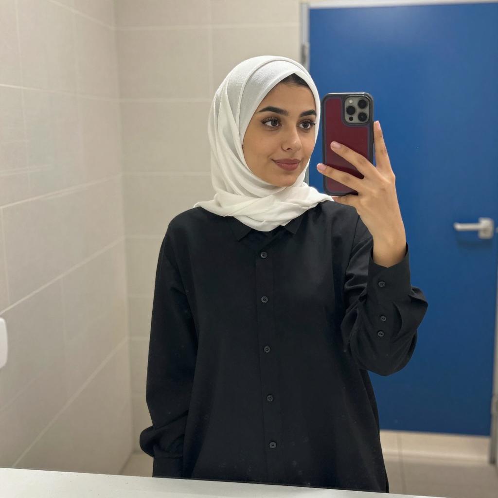 Young Woman Mirror Selfie in Modern Bathroom