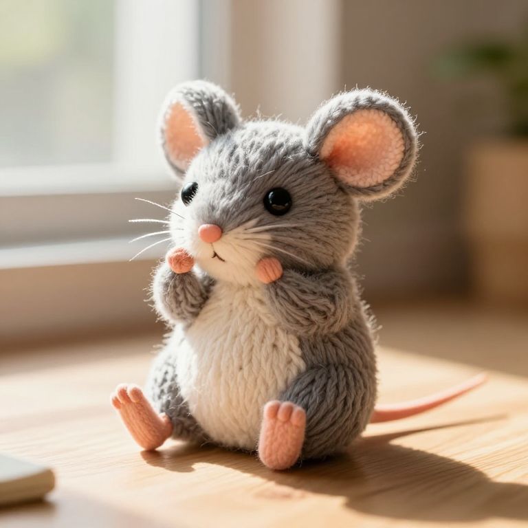 Made Of Yarn squeakums the cute little mouse adventurer rubbing his eyes to wake up in the sunlight,
