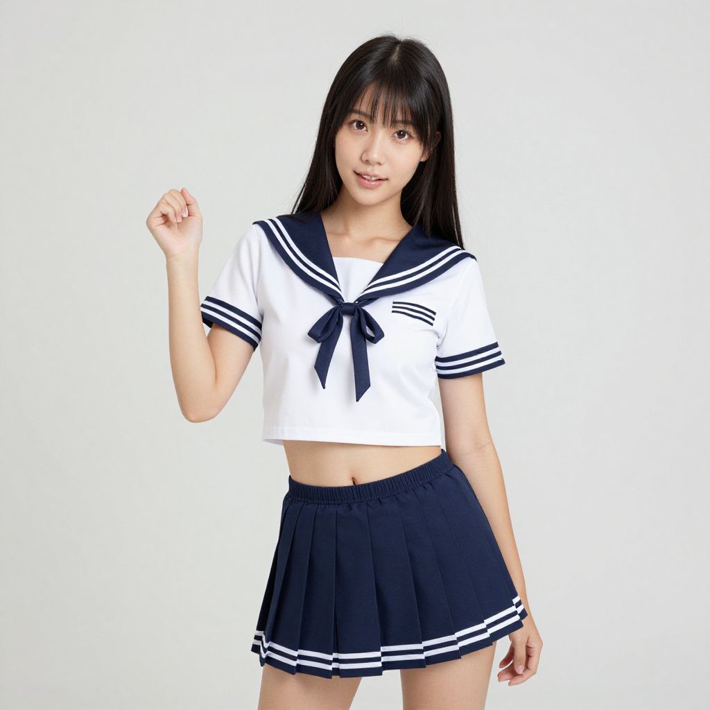 "Woman Sam Costume, asian woman in a sailor's outfit posing for a picture"