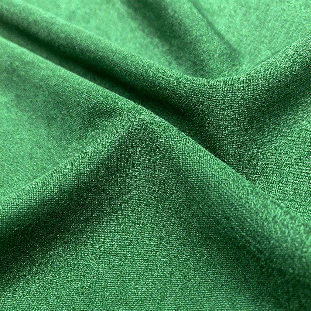 This is a close-up photograph of green fabric with a textured surface. The fabric features a subtle, woven pattern and is draped in gentle folds, creating shadows and highlights that add depth to the image. The green color is vibrant with a slight gradient, ranging from lighter to darker shades. The fabric's texture is visible, showing small, closely-knit fibers. The lighting emphasizes the fabric's texture and the natural creases, giving it a soft, flowing appearance. The overall composition focuses on the fabric's texture and color, with no other objects or backgrounds visible.