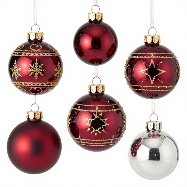 Maroon Christmas Ornaments Part - 49: ... Burgundy And Gold Decorated Glass Ball Ornament Set, ...