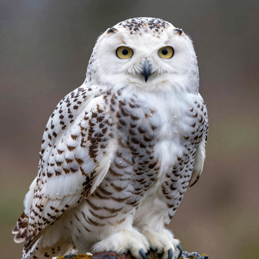Highly detailed portrait of a watchful snowy owl in icy pearl tone, inspired by Audubon, John Singer Sargent, James McDonald.