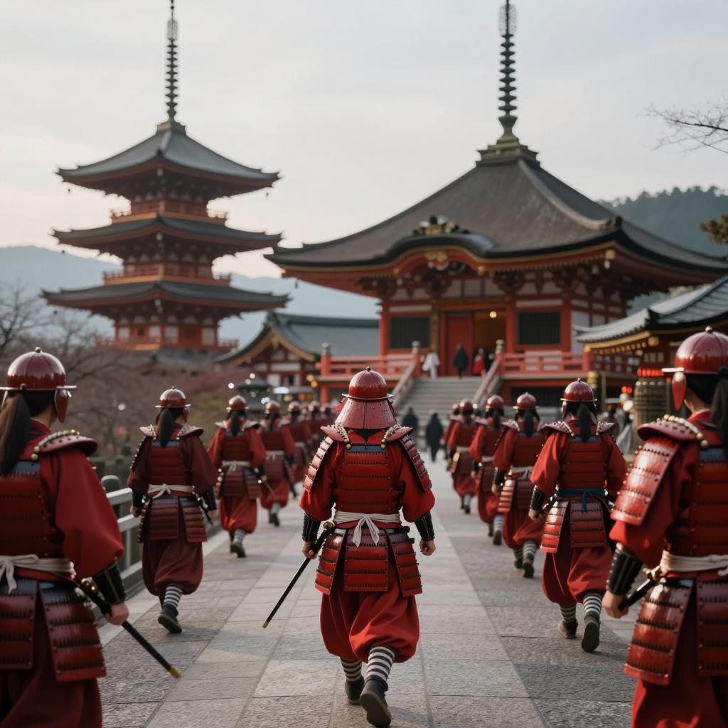 Japanese Ogre Statues in Traditional Setting