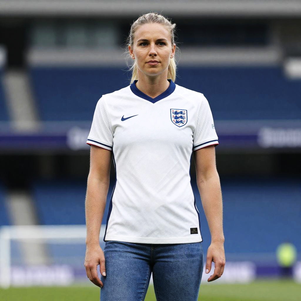 England Ladies Shirt, woman in a white shirt and jeans posing for a picture