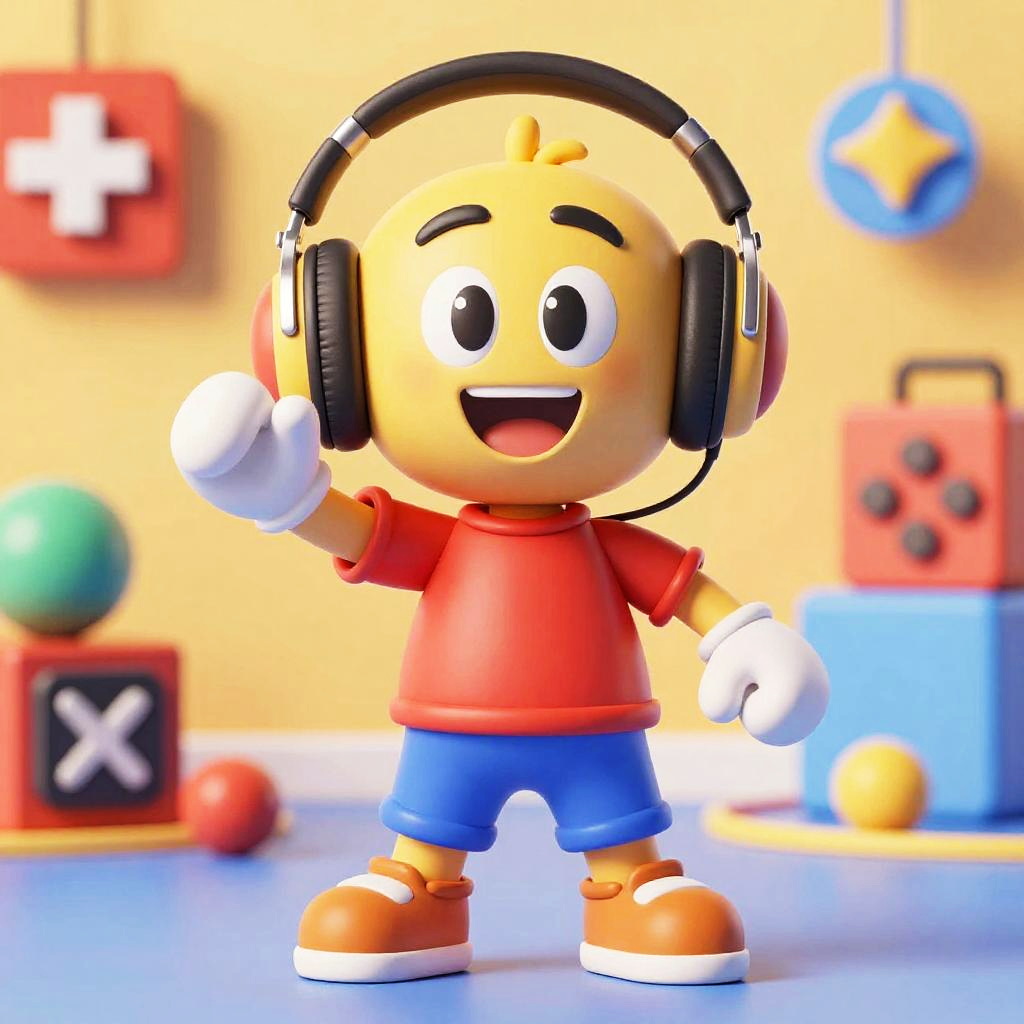 Markiplier full body cartoon style, colorful and energetic, playful expression, wearing signature red shirt and headphones, stylized environment with gaming elements, bright palette