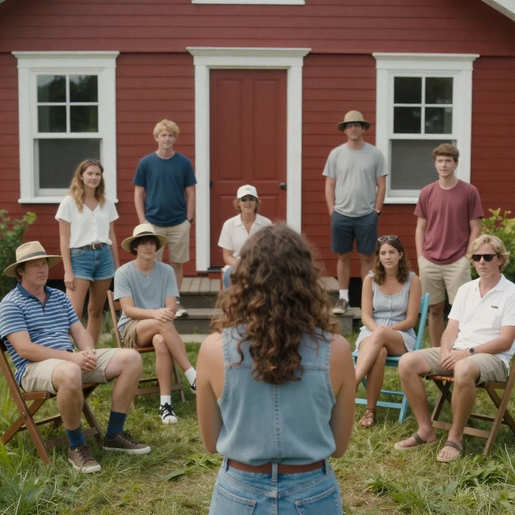 Serious Women at Night by a House