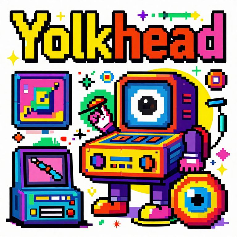 \"Design a visually captivating poster for the band Yolkhead, emulating the raw, nostalgic aesthetic of MS Paint but with surprising intricacy and meticulous detail, Capture the quirky, lo-fi charm of pixelated brush strokes, bold block colors, and jagged edges while infusing an unexpected level of precision and artistry, Incorporate creative details like hand-drawn text, vibrant layers of color, and small but intricate elements that stand out against the MS Paint simplicity, The poster should feel playful and slightly chaotic, using exaggerated highlights, shadows, and textures to bring out the DIY, garage-band vibe of Yolkhead, merging retro digital art with eye-catching modern flair