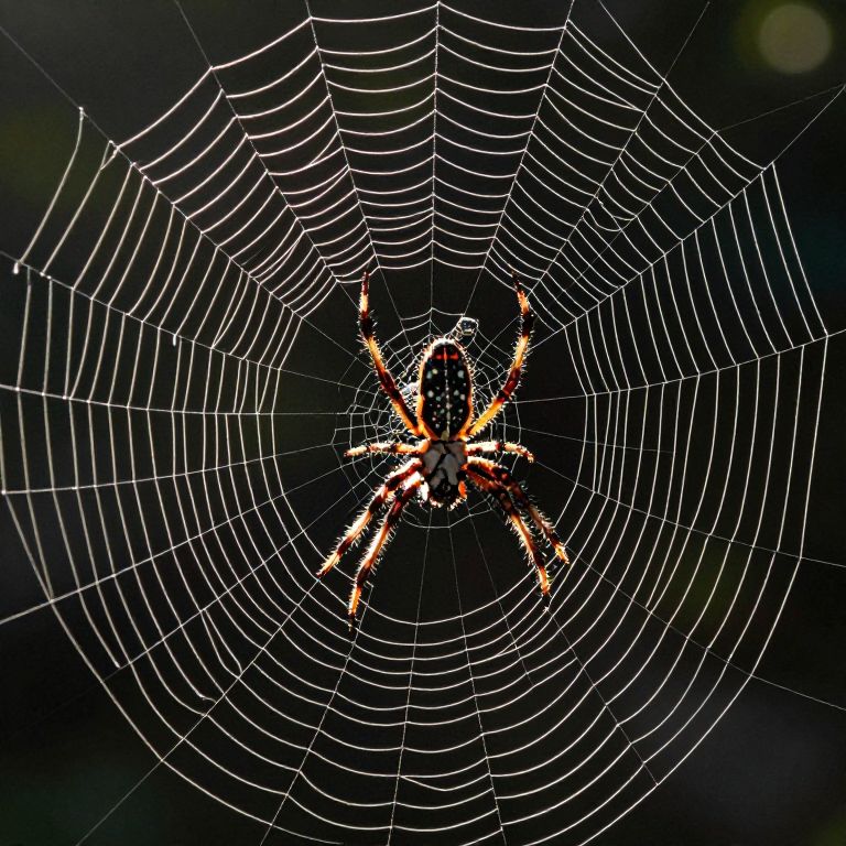 A colossal spider spins a web so vast it bends the light around it like a black hole, trapping sunbeams in intricate, glowing patterns.