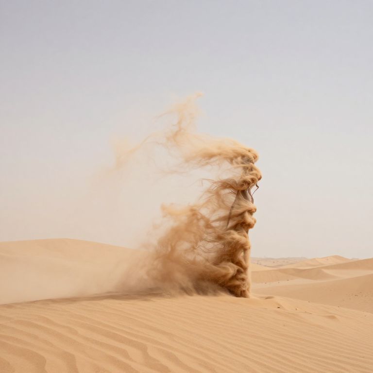A sentient desert crawls forward over continents, shedding patches of sand to reveal ancient civilizations preserved beneath.
