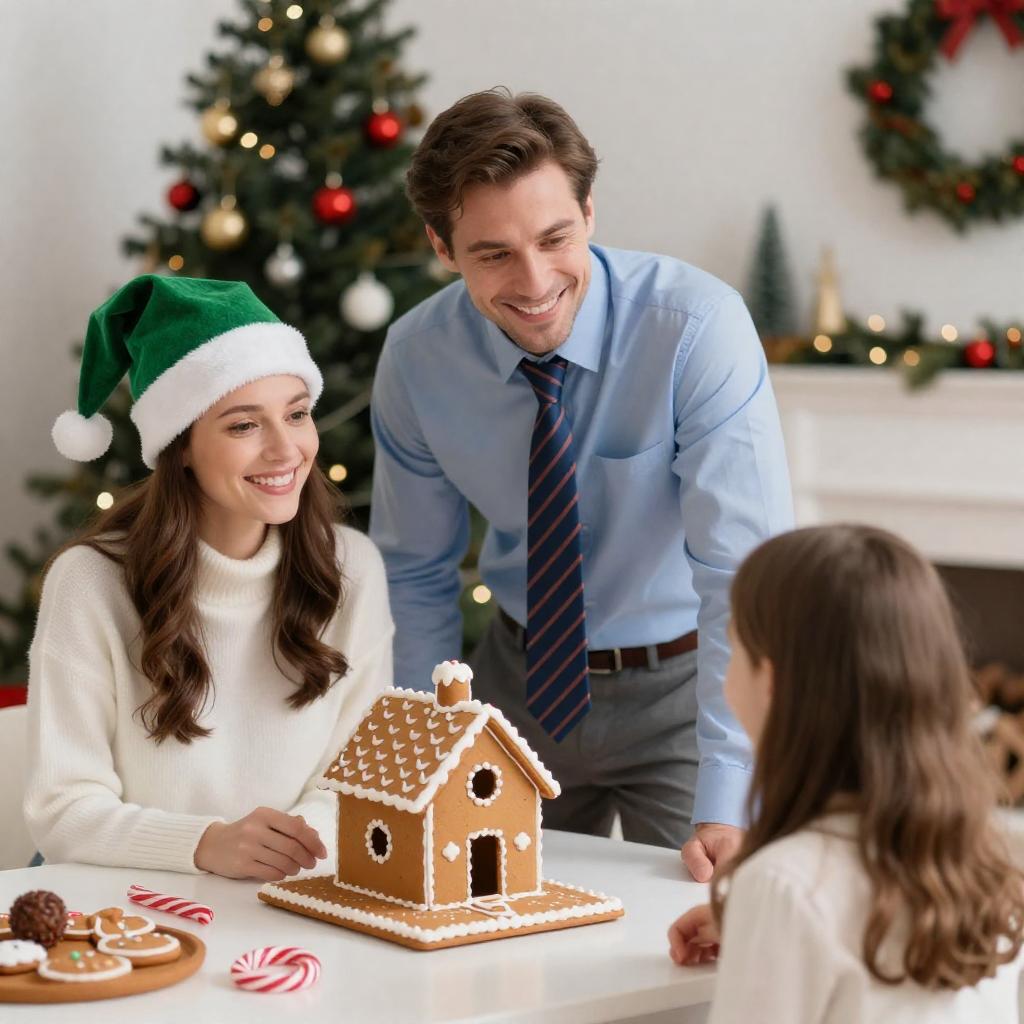 Festive Gathering with Gingerbread House