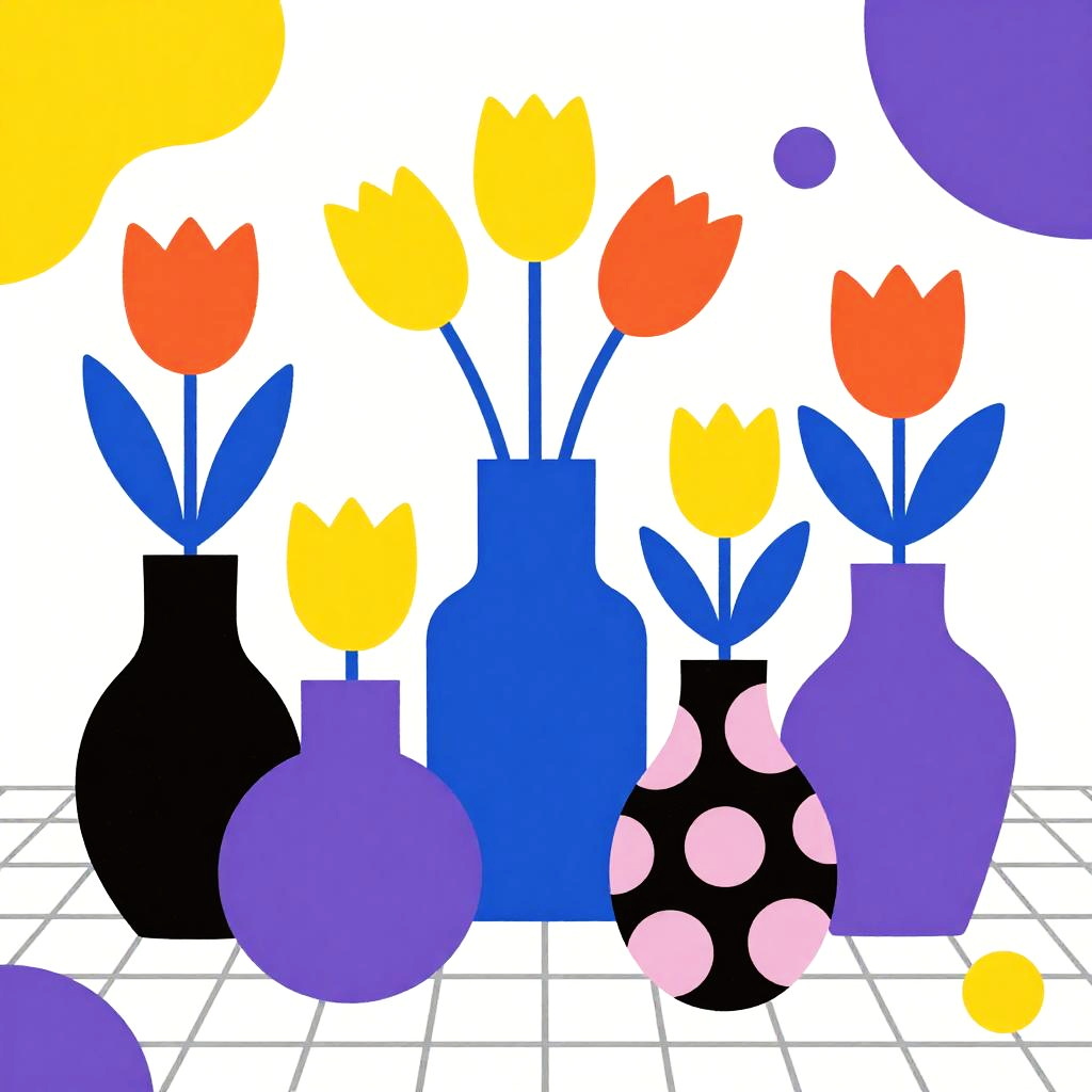 Colorful Abstract Vases and Tulips