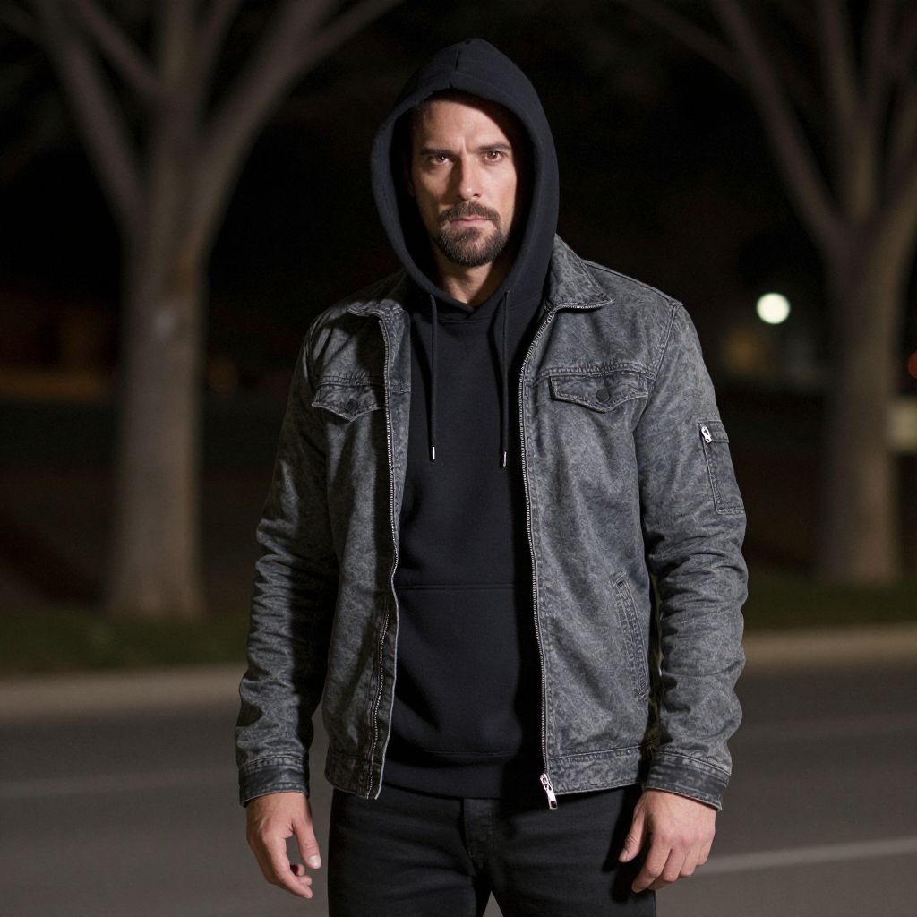 Night Walker Costume, man in a hooded jacket and hoodie with a hood on