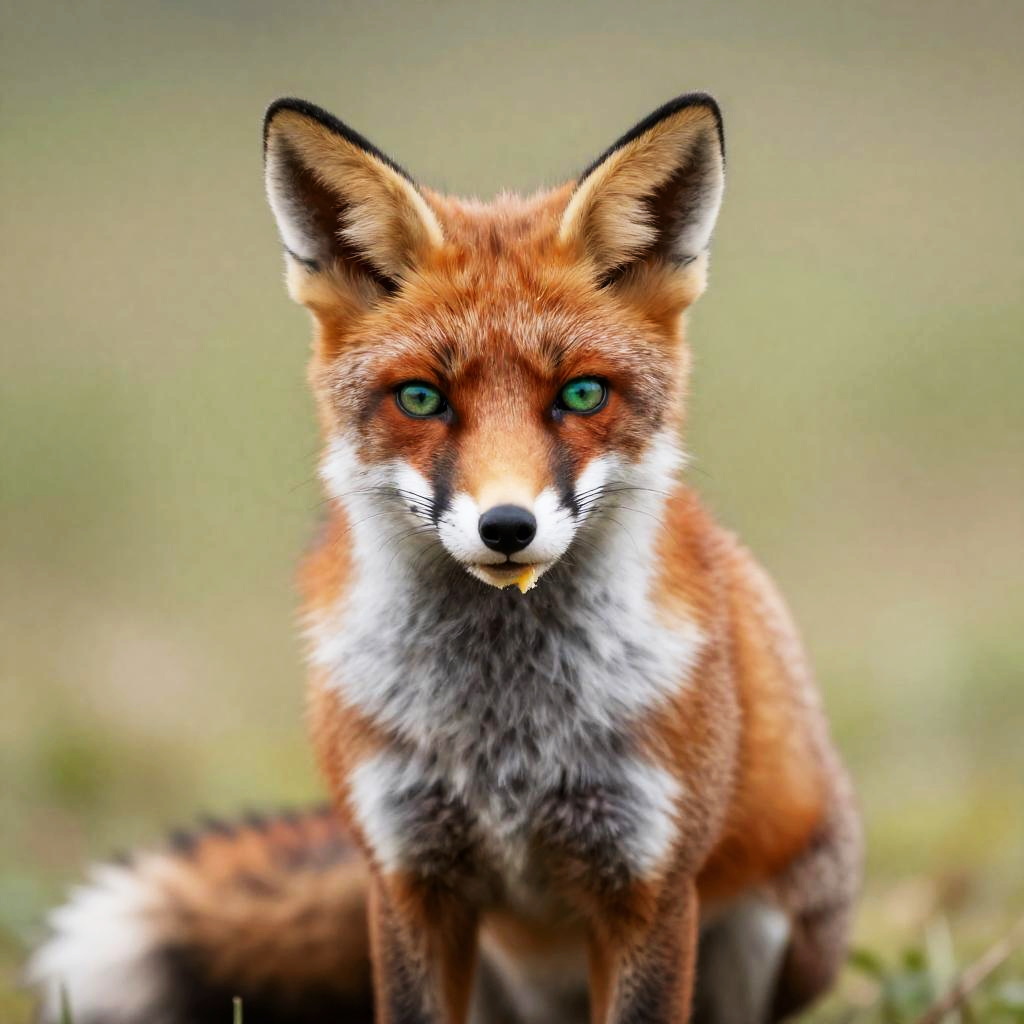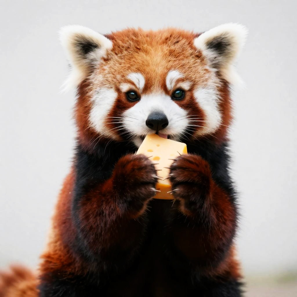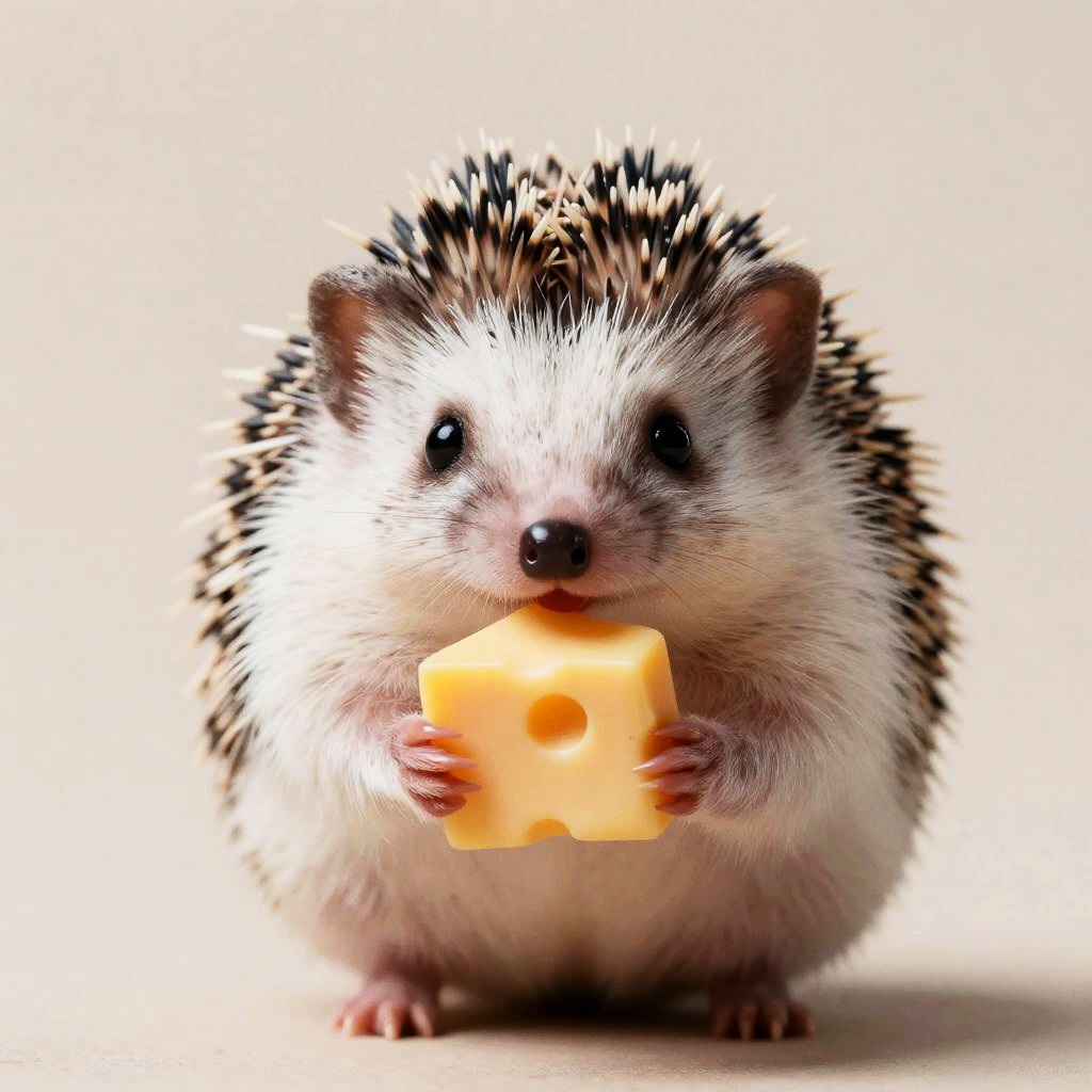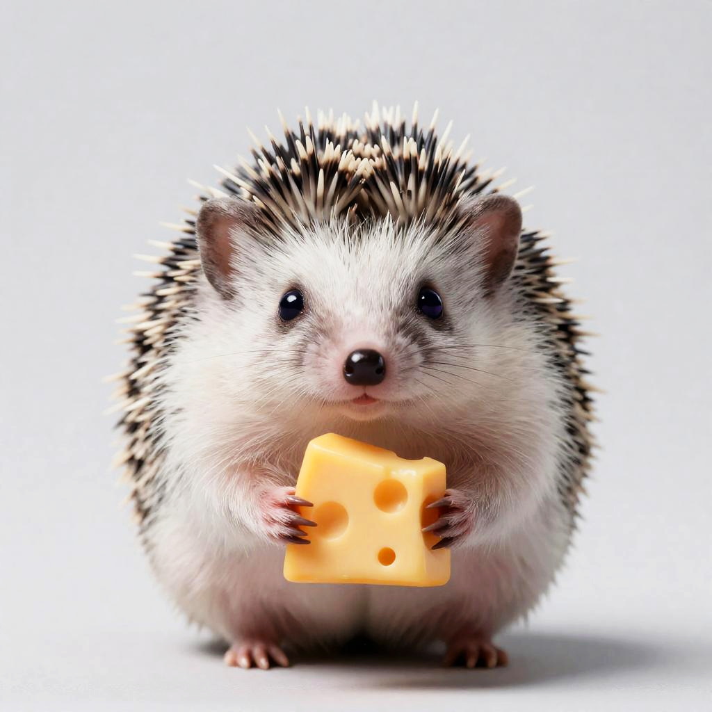 Upper body, solo, tiny field mouse with soft tawny fur, delicate whiskers and round pink ears, holding cheese, looking at viewer, bright green eyes, closed mouth, straight-on, simple background