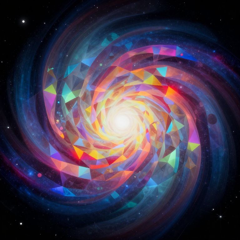 Craft an entrancing abstract composition showcasing a vivid tapestry of interlocking geometric shapes in a surreal, psychedelic fusion echoing the op art movement's essence. The central attraction is a colossal swirling helix made up of iridescent polygons that appear to twist and distort as they extend outward from a single nucleus. Encircled by a spectrum of concentric circles and chevrons, this captivating vortex conveys an impression of motion and depth while retaining its static two-dimensional form. The complementary color palette alternates between deep, saturated tones and vibrant pastels, creating an emotional spectrum that transcends the limits of visual perception, inviting observers to become engrossed in the dynamic interplay of light, color, and geometric forms.