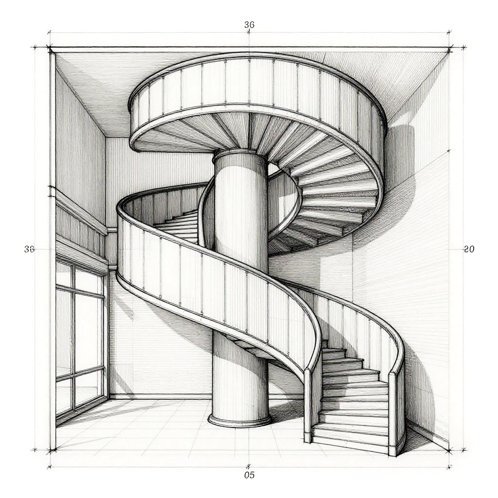 Architectural composition of colored ink wash featuring ornate windows in the style of Zaha Hadid