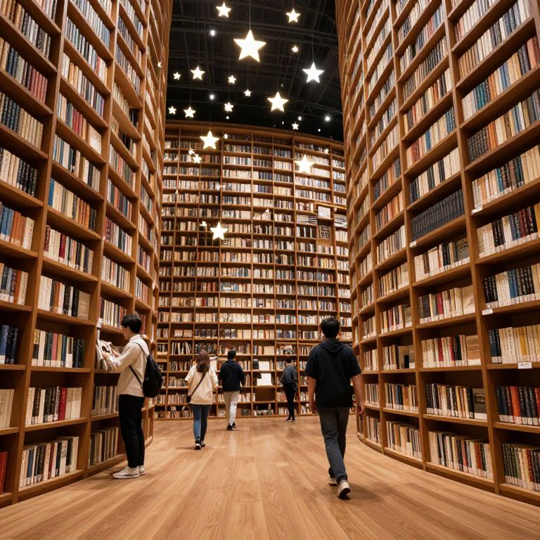 In a gravity-defying library where books dance like stars, readers traverse endless shelves, their footsteps echoing with the weight of wonder and the quiet promise of discovery.