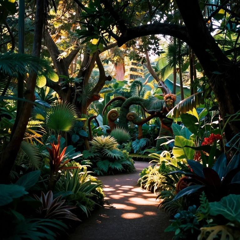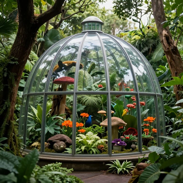 A mesmerizing procession of luminous umbrellas illuminates a mystical garden, casting a warm glow over miniature ecosystems that pulse with life, evoking a sense of wonder and the delicate balance between light and shadow.