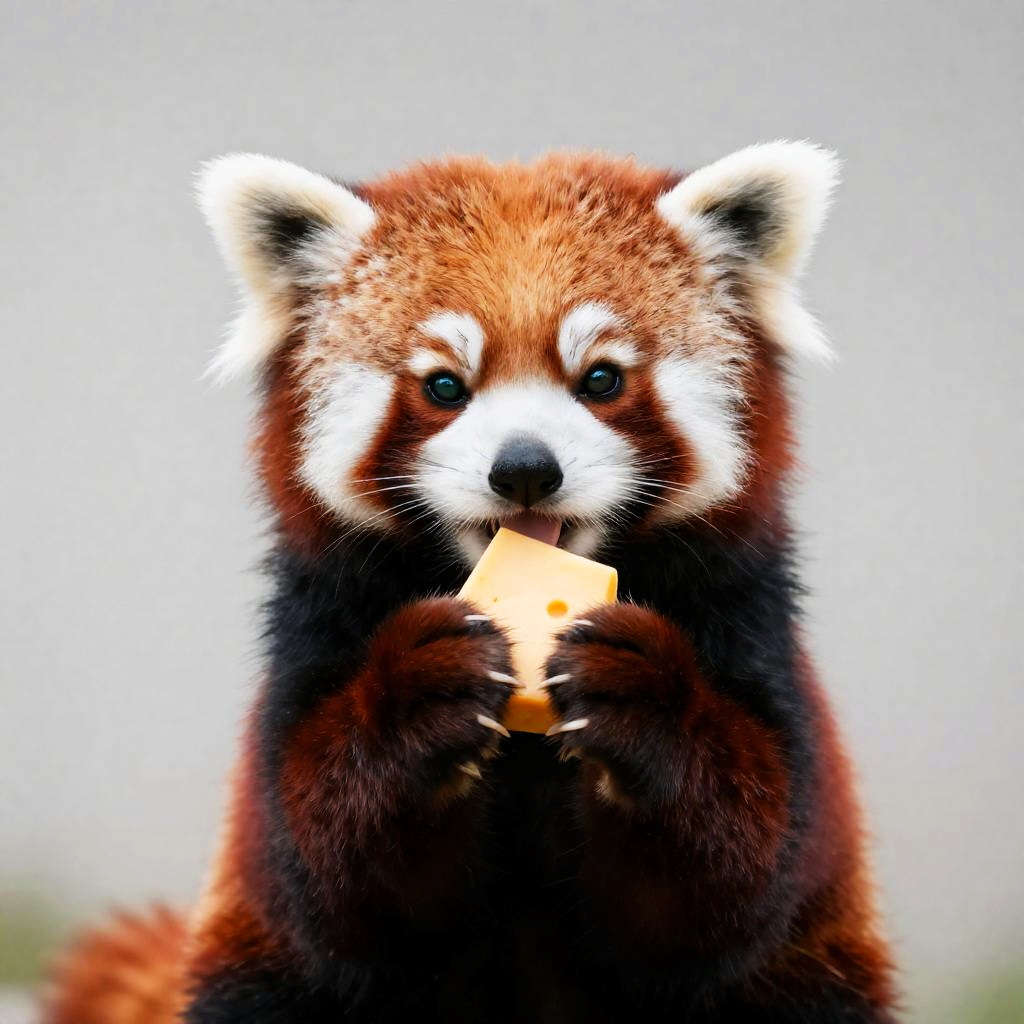 Chubby Red Panda Holding Cheese Portrait