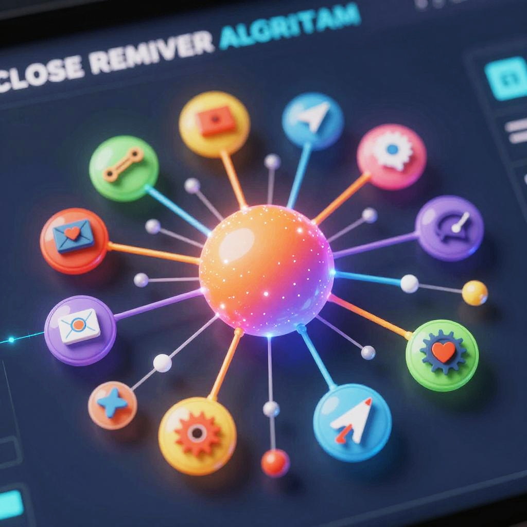 Close-up of AI close remover algorithm visualized as a neural network erasing unwanted objects from photo, vibrant digital colors, abstract tech elements, glowing nodes and connections, sleek modern user interface, cyberpunk aesthetic